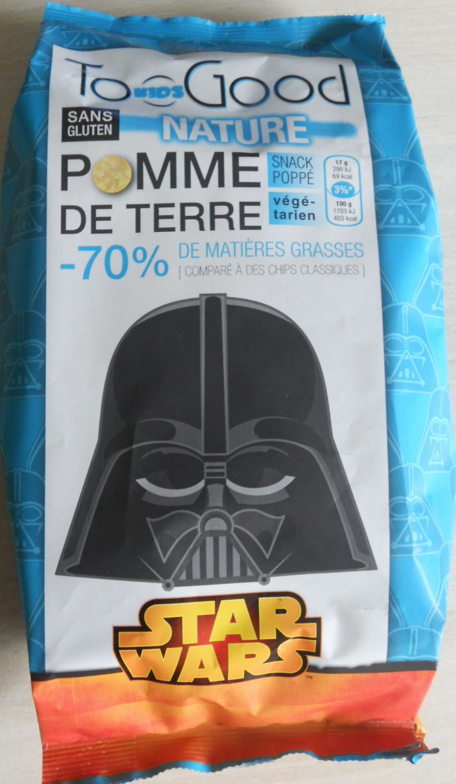 la marque TOO GOOD Kids à lancé sur le marché français des chips dont le paquet est estampillé Star Wars