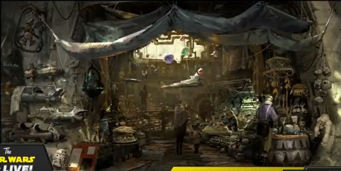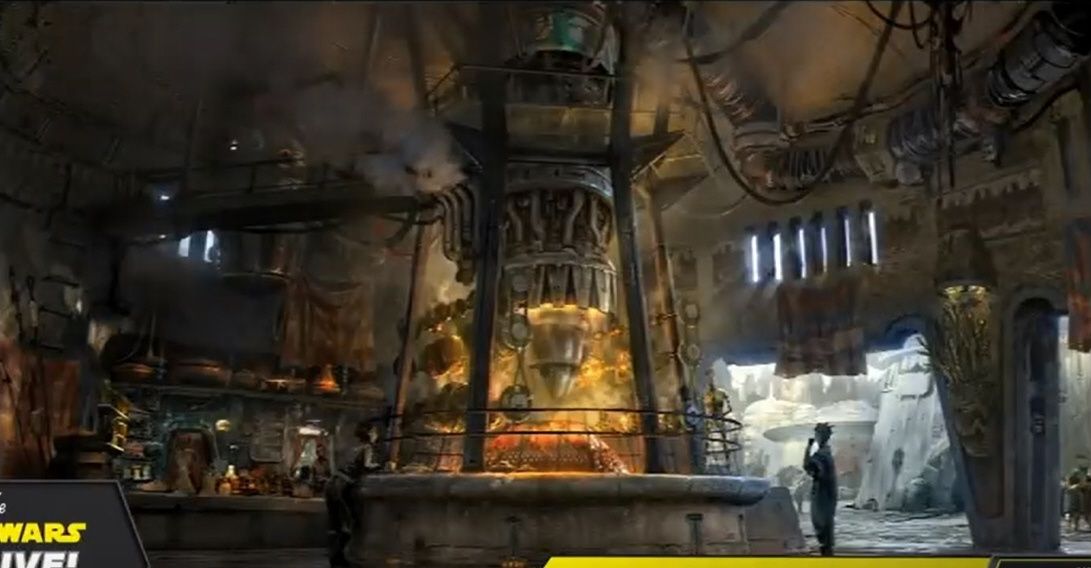 Les bouteilles de coca-Cola , Sprite , et quelques autres , vendues au public dans le parc , seront adaptés à l'univers Star Wars , et notamment leur formes seront différentes et auront leurs étiquettes en Aurebesh , le langage écrit de l'univers Star Wars