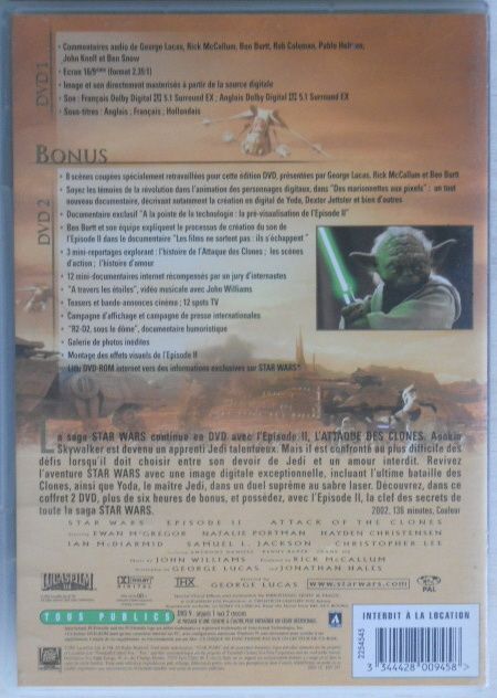 Donc VHS et DVD de l'épisode II sortirent ensembles fin 2002
