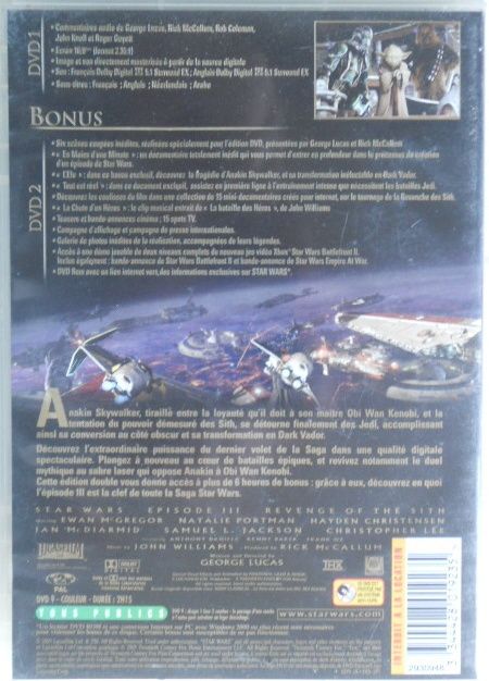 Car un second DVD , entièrement composé de suppléments était présent dans le boitier ,ce second DVD était sérigraphié avec une photo du combat entre les deux Jedi et l'apprenti Sith